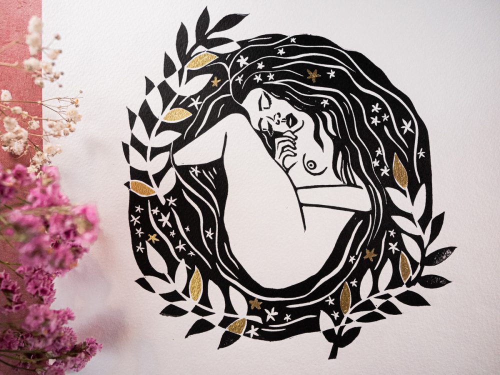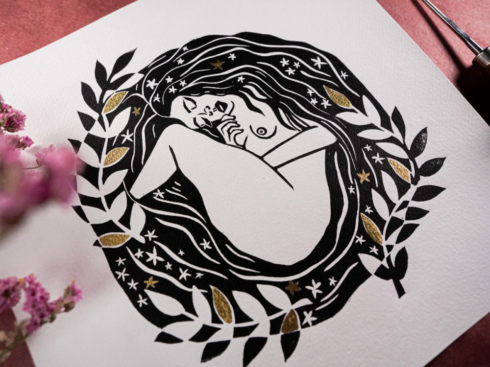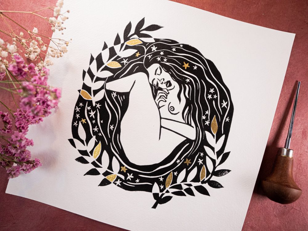 Be the first to review “Linogravure Danaé – Gravure artisanale à la main.”